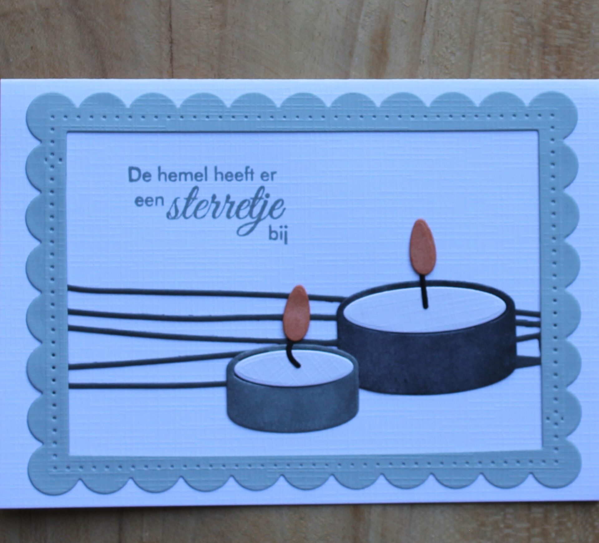 Condoleancekaart A6 wit/lichtgrijs/donkergrijs, 2 kaarsjes, tekst De hemel heeft er een sterretje bij